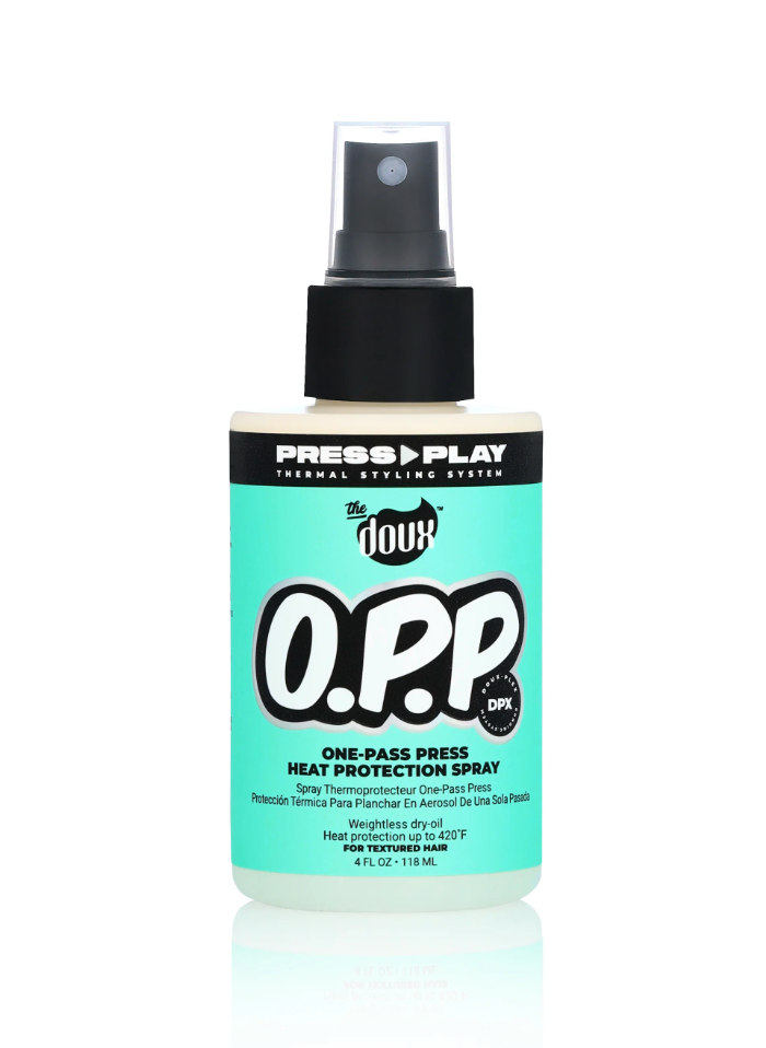 ONE-PASS PRESS! Formulated with a plant-based polymer to strengthen as it seals, O.P.P. softens in one pass to prevent straight spots created by double-pressing. It tames coarse textures and smooths the cuticle, reducing excess tension during the silkening process. Use it after heat styling for double the weightless shine.